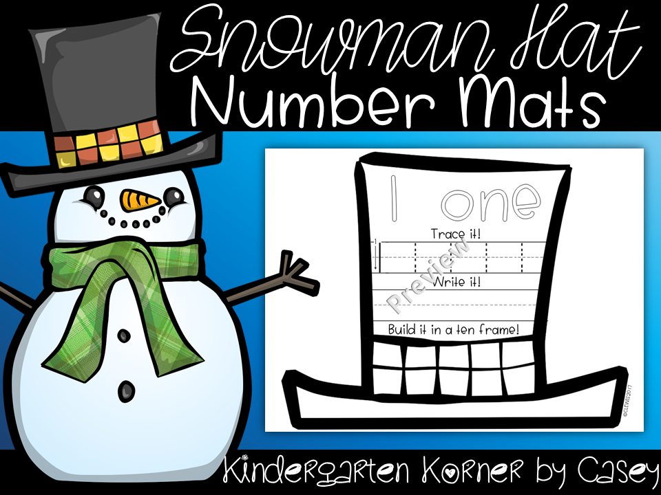 These Snowmen Hat Number Mats are perfect for an instant Winter Math Center! Print and laminate for use year after year. The mats are perfect for number writing practice as well as 1:1 correspondence practice using ten frames! For extra fine motor practice, I like to have my students roll small play-dough balls to show the number in the ten frame.