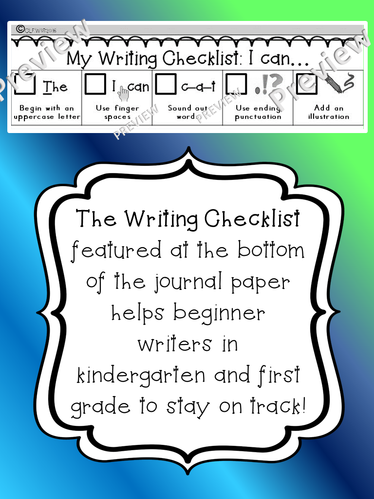Featured at the bottom of the journal paper, this checklist helps beginner writers in kindergarten and first grade to stay on track!